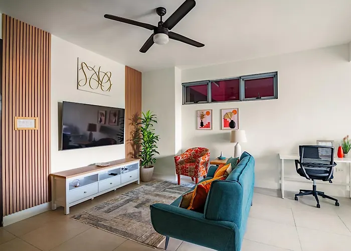 Along with self-catering amenities like an equipped kitchenette, Modern Condo 1 King Bed Pool And Gym also offers a dining area. You can drive to Norman Manley International airport in 30 minutes.